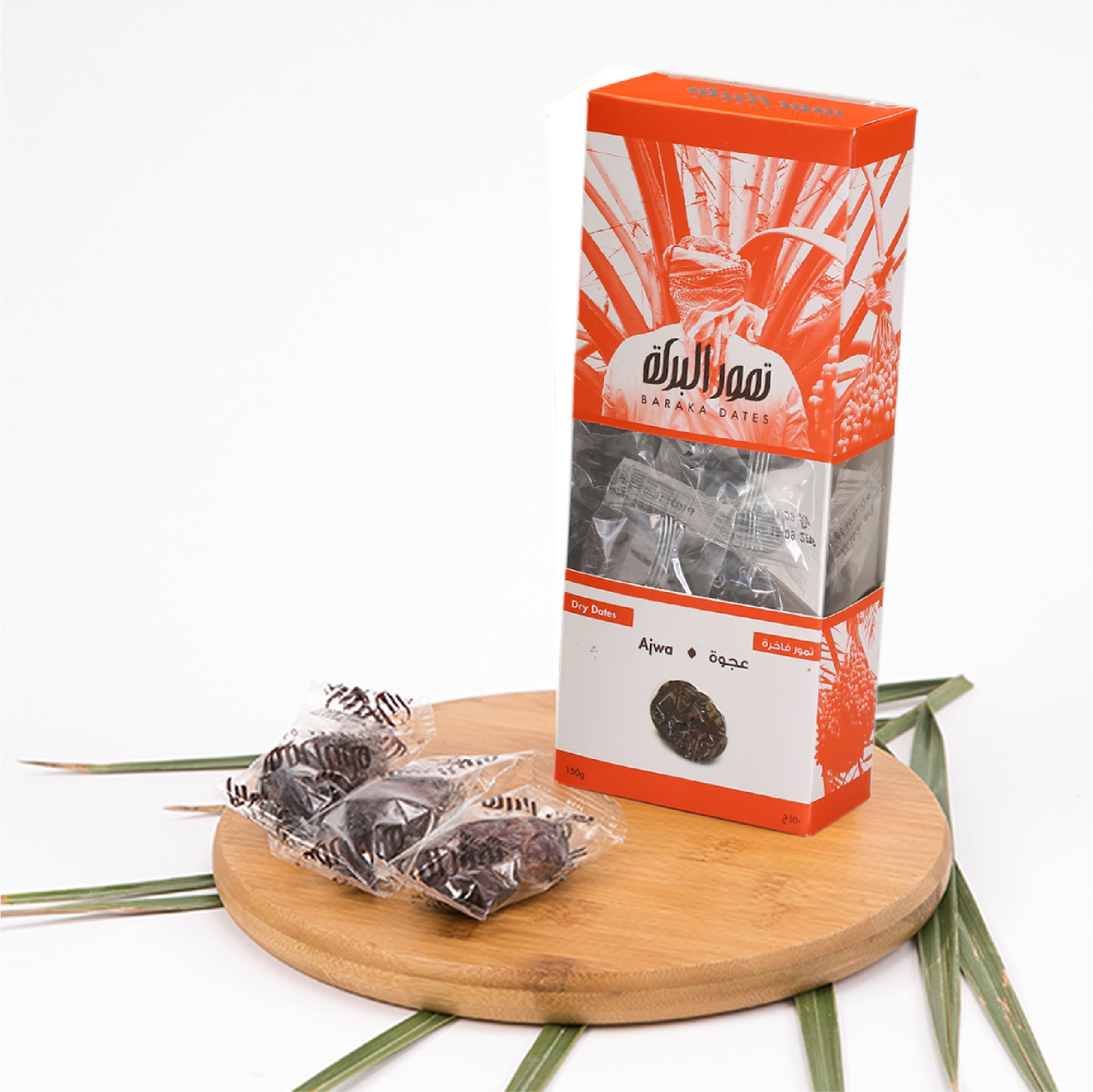 Ajwa dates are a specific variety of dates that originate from the city of Al-Madinah Al-Munawwarah. They are highly regarded for their rich taste, soft texture, and numerous health benefits. Ajwa dates are dark brown in color, with a slightly wrinkled appearance, and they have a moderate sweet flavor. Single wrapped Packed in a box.