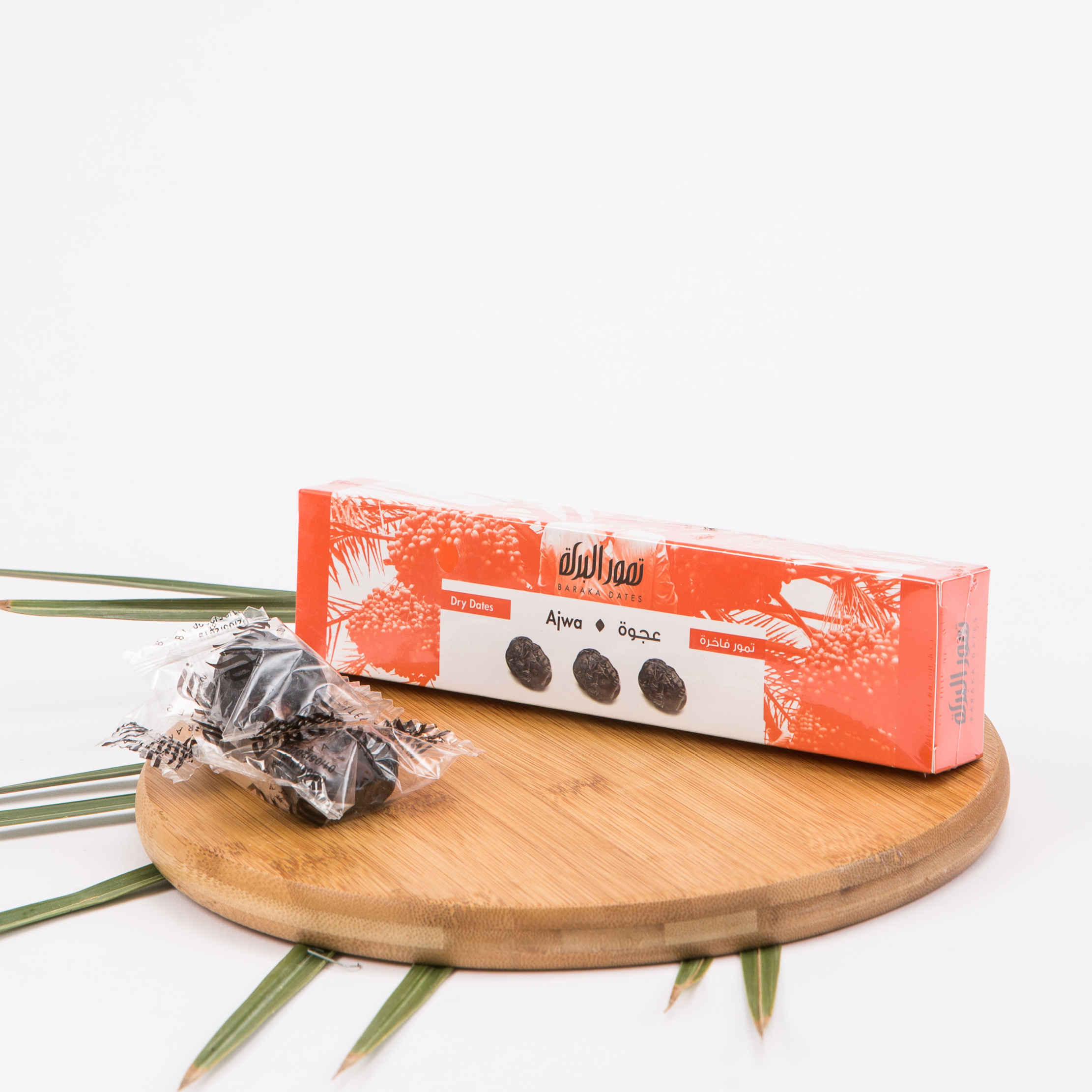 Ajwa dates are a specific variety of dates that originate from the city of Al-Madinah Al-Munawwarah. They are highly regarded for their rich taste, soft texture, and numerous health benefits. Ajwa dates are dark brown in color, with a slightly wrinkled appearance, and they have a moderate sweet flavor. Single wrapped Packed in a box.